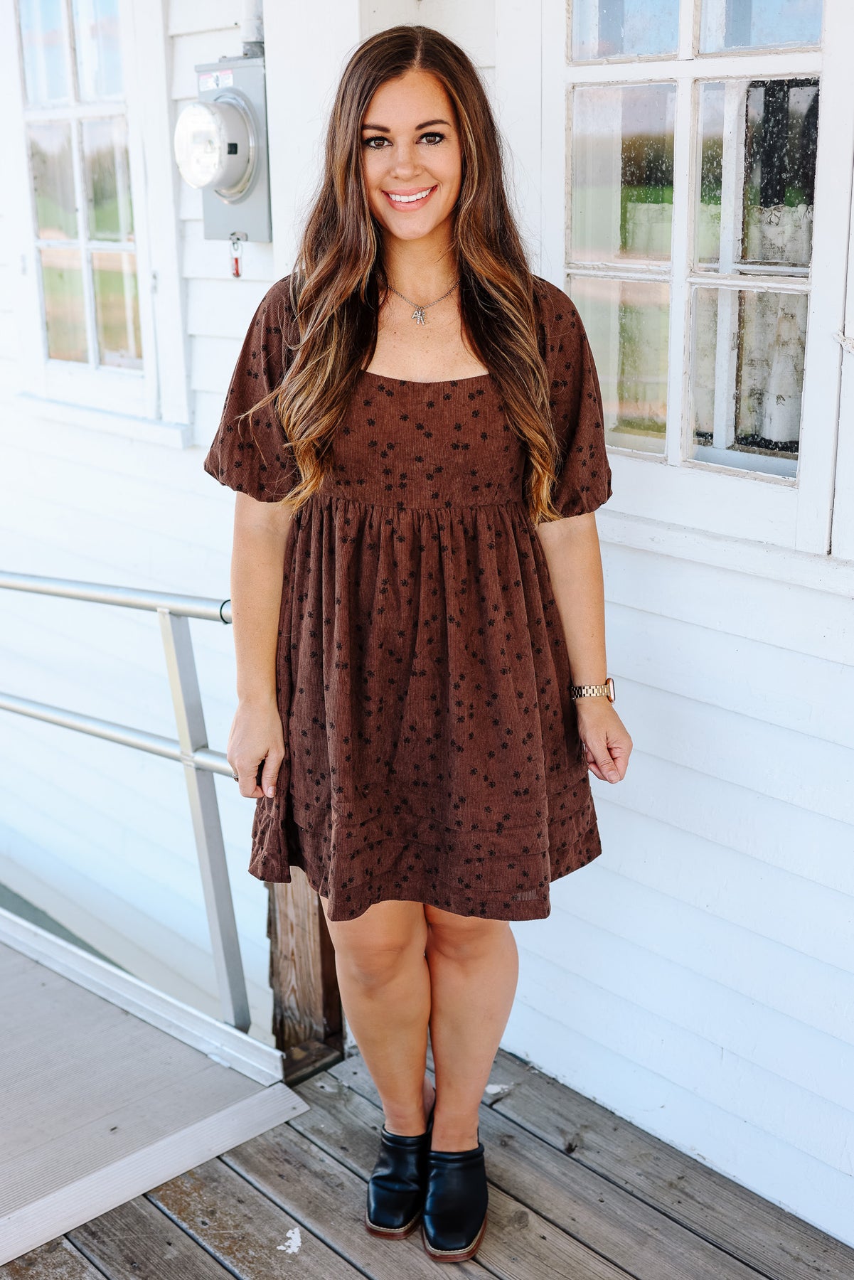 Lou Floral Corduroy Dress - Mocha
