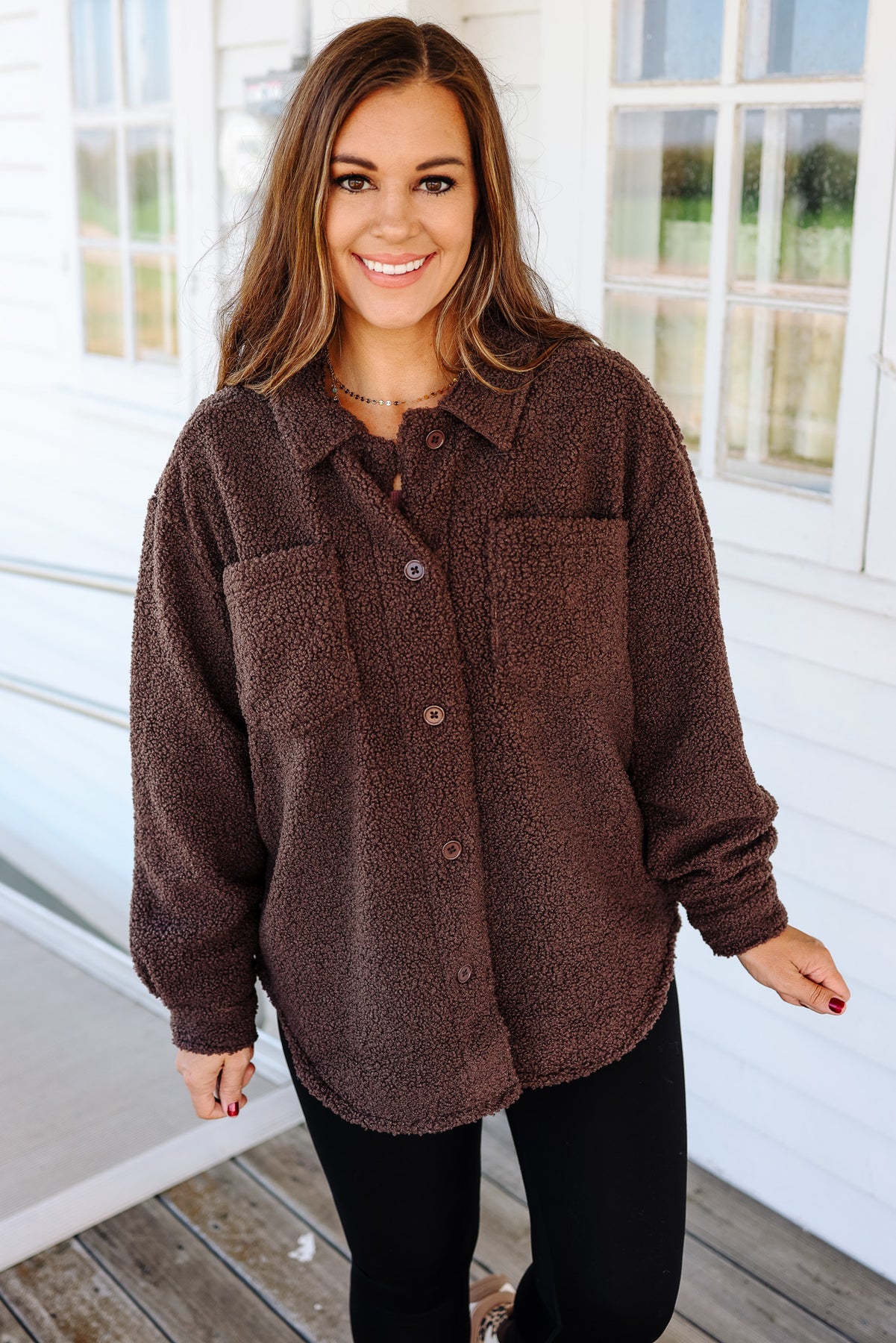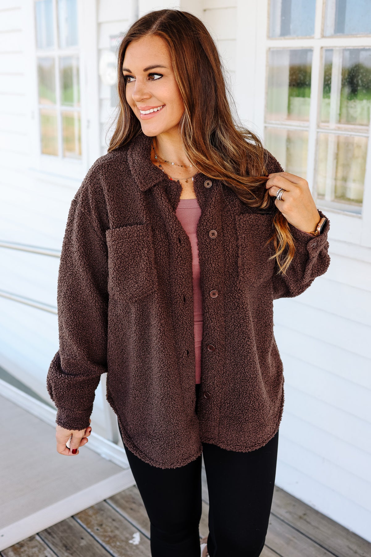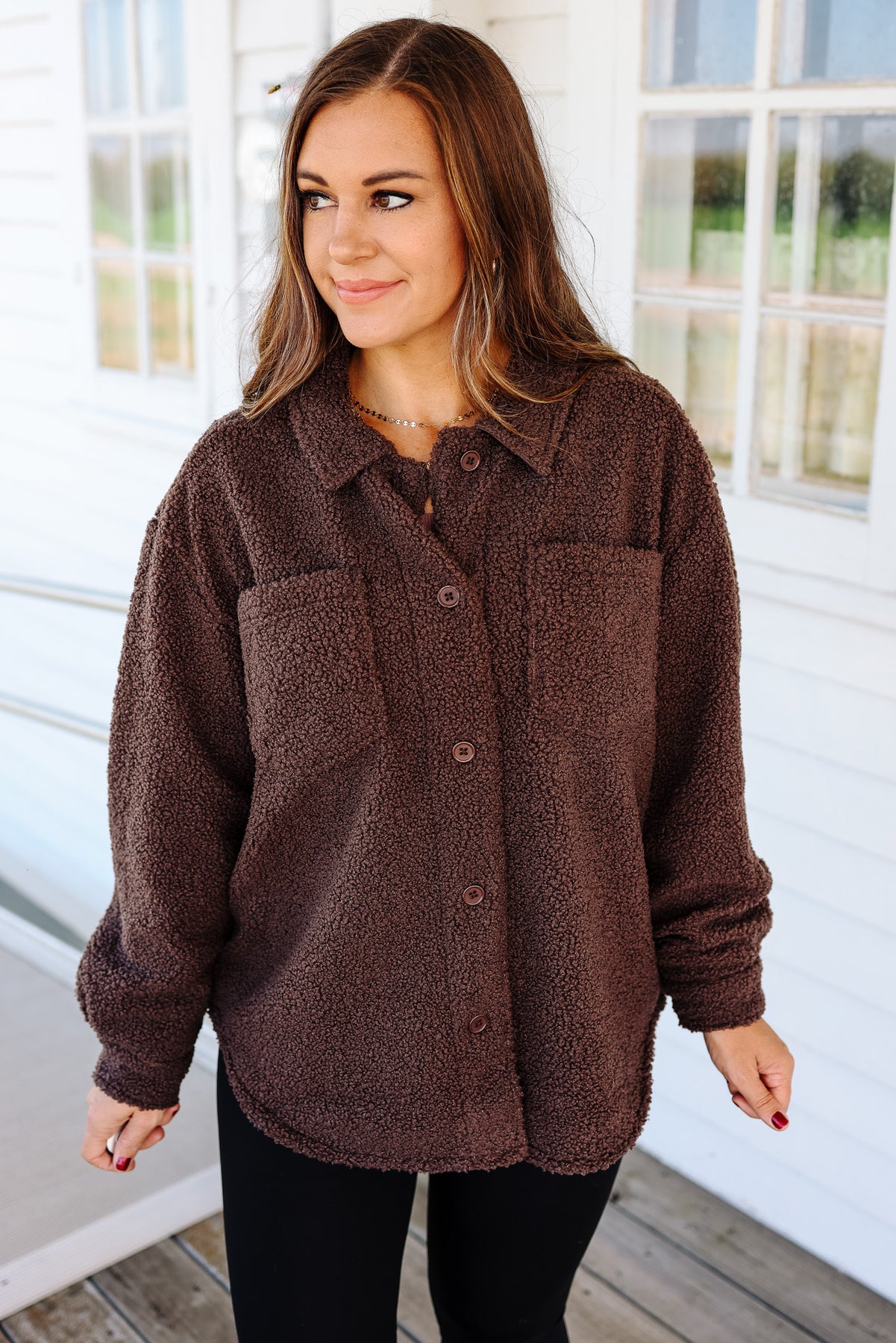 Bring effortless warmth and laid-back style to your cool-weather wardrobe. Designed with a relaxed, oversized fit, this cozy layer features soft sherpa fabric and classic front chest pockets for a touch of utility. Perfect for throwing on over your favorite tee or hoodie, it’s the ultimate transitional piece for everyday comfort.
