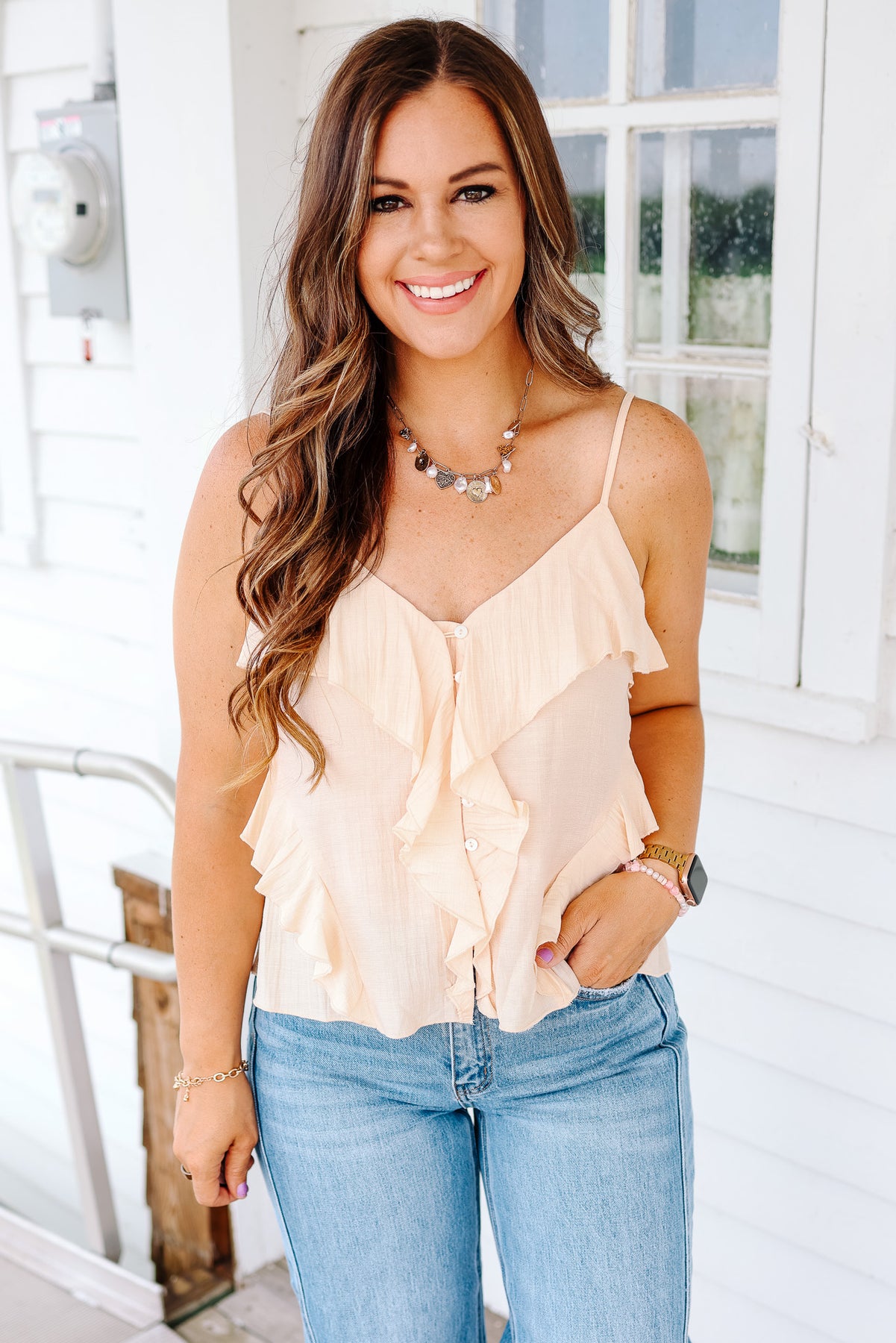 Dina Flowy Button Down Cami Top - Blush