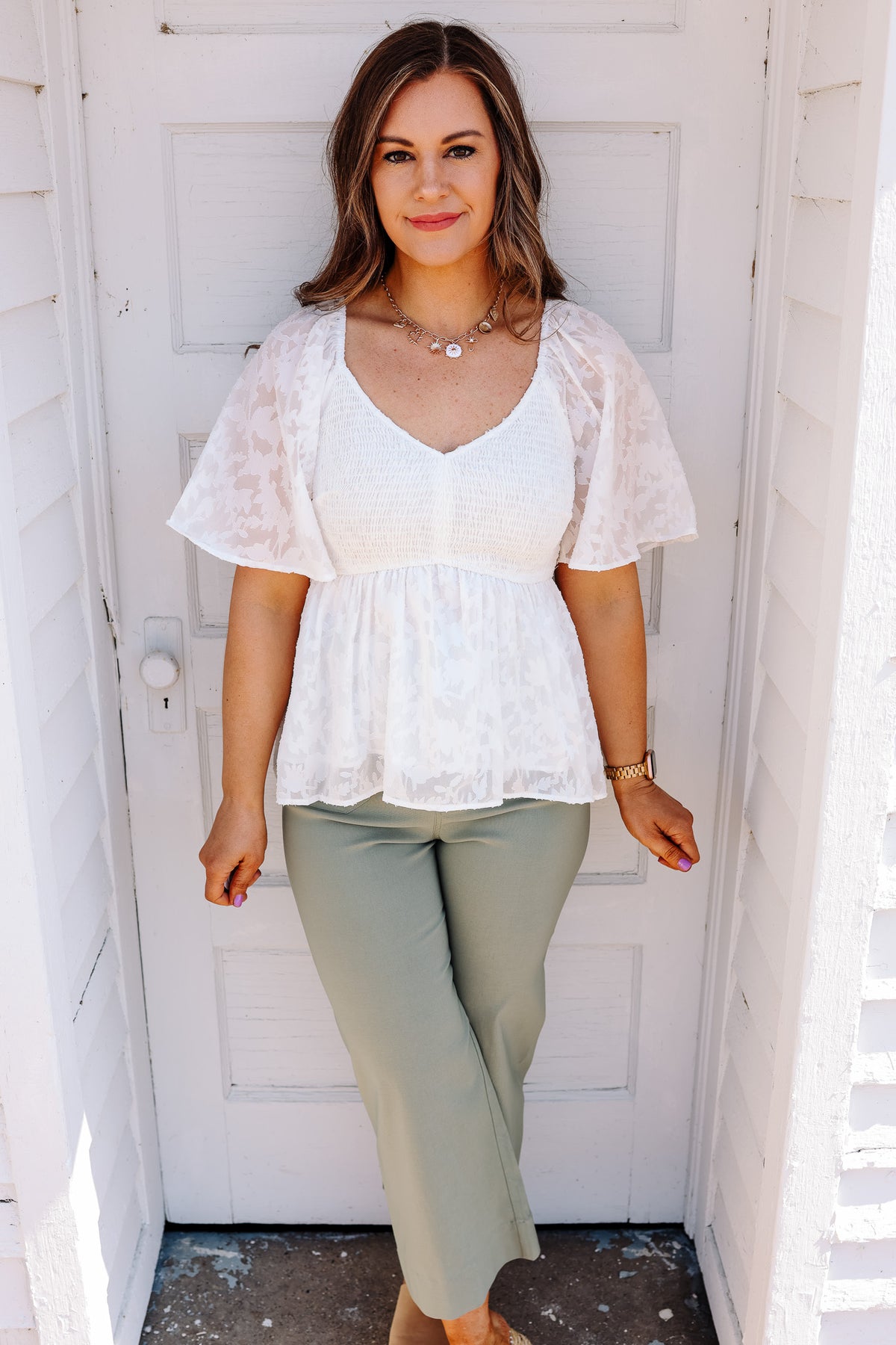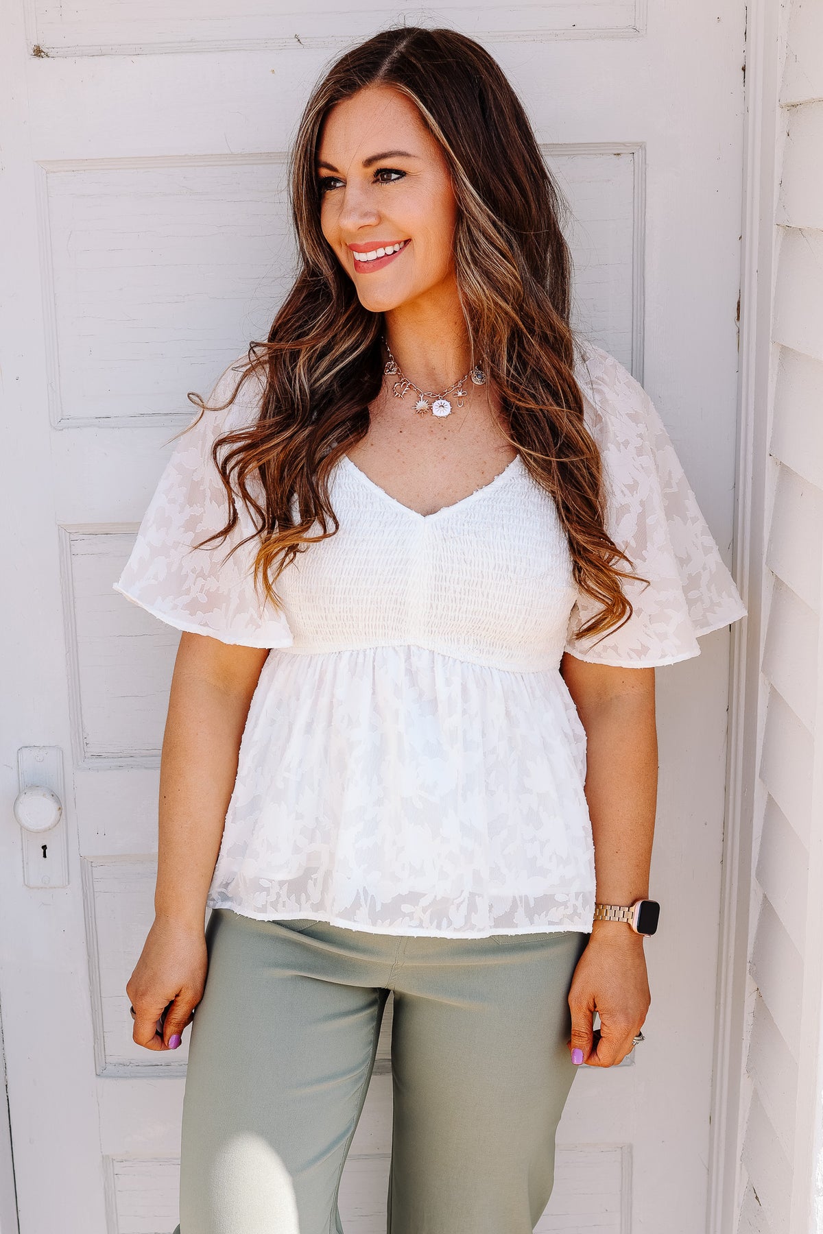 Freya Smocked Peplum Top - White