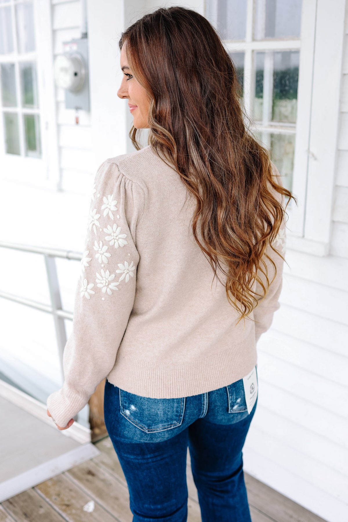 Kali Floral Embroidery Sleeve Sweater - Taupe