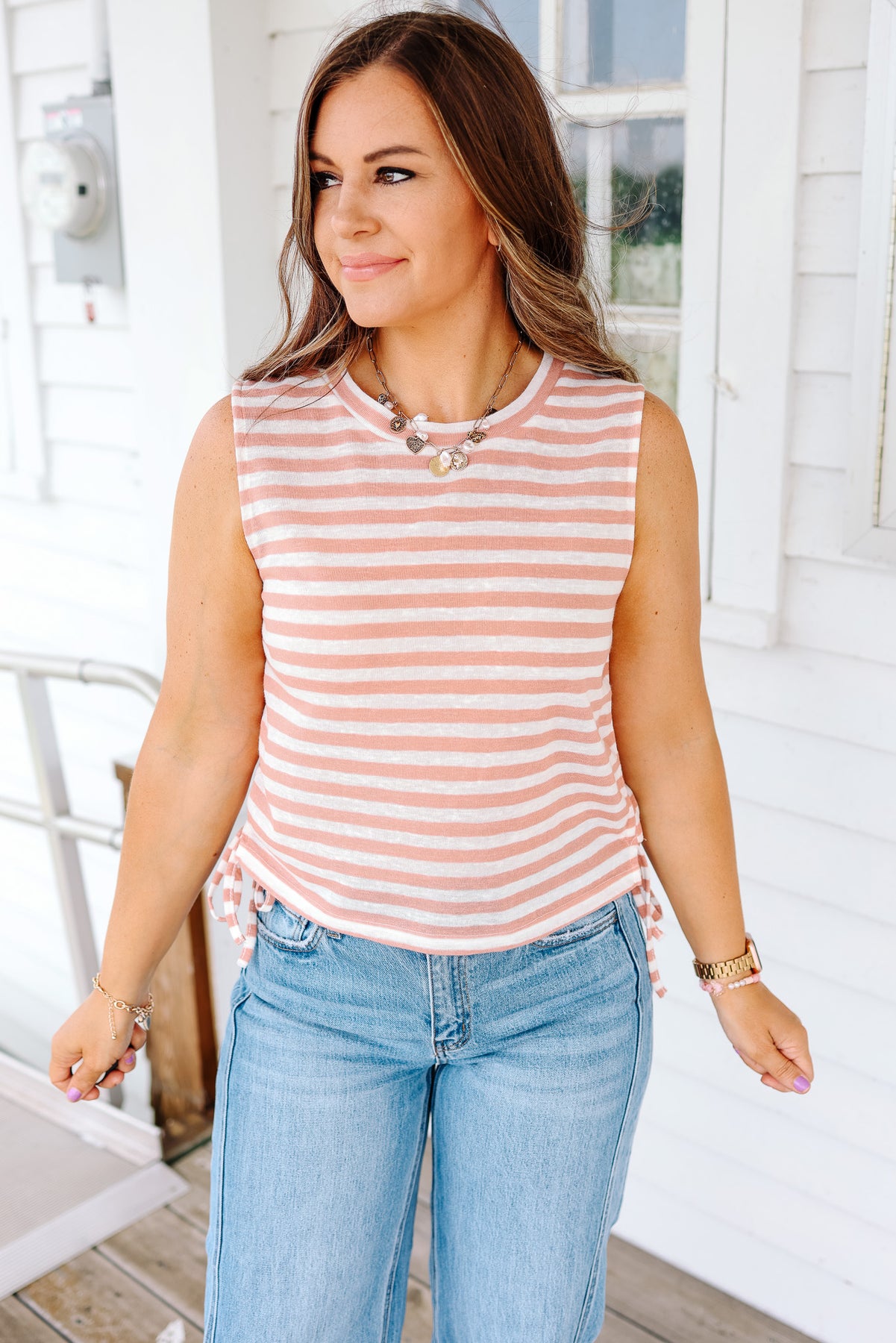 Kaia Side Ruched Muscle Tank - Apricot